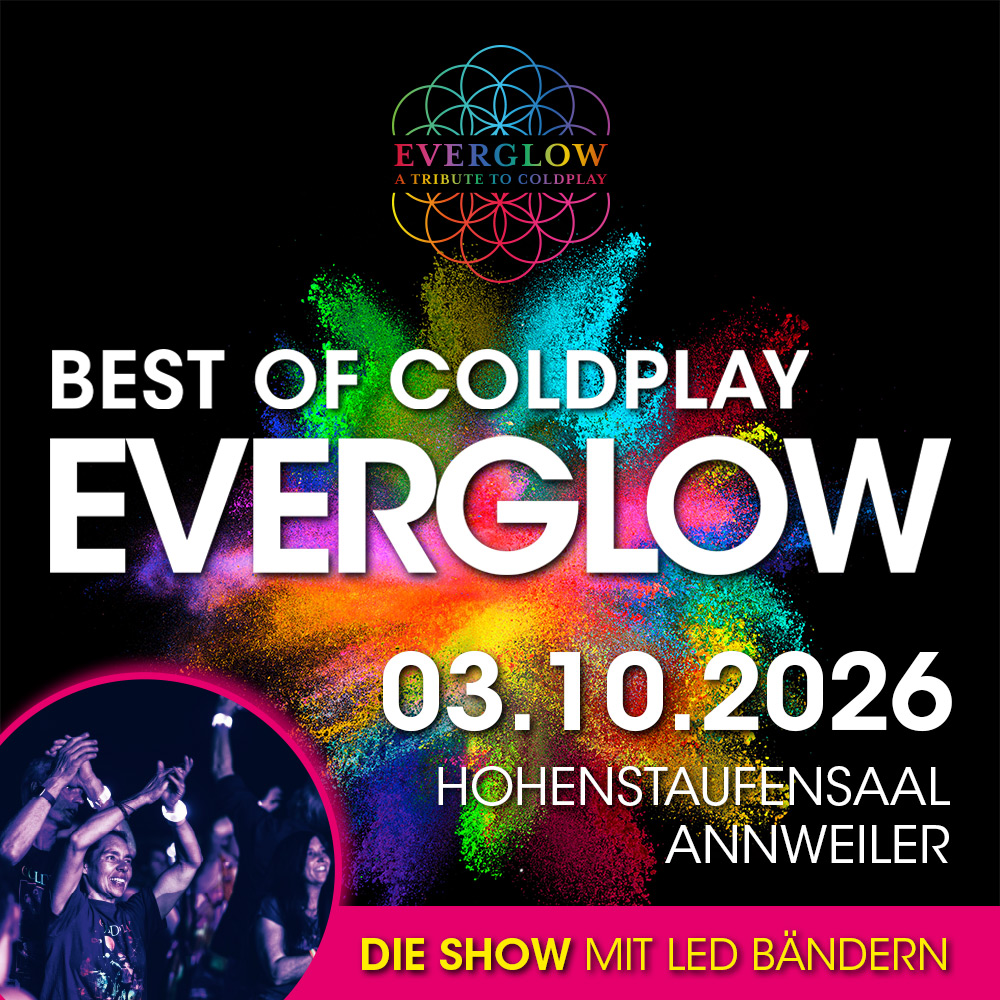 Sound und Klang einfach perfekt. Die Kultsongs von Coldplay live gespielt und hammermäßig gesungen. Everglow macht einfach Laune und sorgt dafür, dass das Publikum am Ende lauter als die Band singt. Das Tüfteln am Coldplay-Klang und die hervorragenden Musiker haben letztlich “EVERGLOW – A Tribute To Coldplay” einen hervorragenden Ruf verschafft und so kommen Coldplayfans von Nah und Fern um ihre Lieblingssongs zu zelebrieren. Feiernde Fans und ein Publikum, das mit der Band zu einer Einheit verschmilzt, das ist typisch für die Everglow-Konzerte. Dass für die Show das Klavier und die Instrumente im Coldplay-Look gefertigt wurden, ist fast selbstverständlich. Doch neben dem optischen Coldplay-Stil ist es vor allem der authentische Sound, der die Band so richtig genial macht und der sicherlich wieder einen großen Run auf die Eintrittskarten auslösen dürfte.