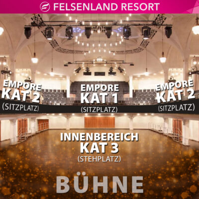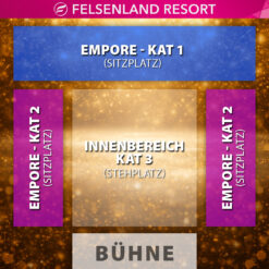 | Kategorie | Kategorie 1 (Empore Mitte) – 46,90 Euro, Kategorie 2 (Empore seitlich) – 42,90 Euro, Kategorie 3 (Stehplatz Innenbereich) – 34,90 Euro |