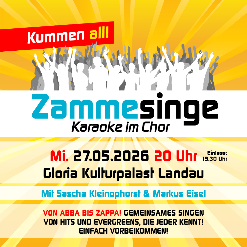 „Zammesinge“ heißt: Musikbegeisterte Menschen treffen sich mit Gleichgesinnten zum gemeinsamen Singen in entspannter Atmosphäre. Das Repertoire besteht aus Titeln aller Stilrichtungen, die jeder kennt. Als musikalische Begleitung gibt es mit Markus Eisel und Sascha Kleinophorst zwei Musiker, die das Ganze leiten und begleiten.